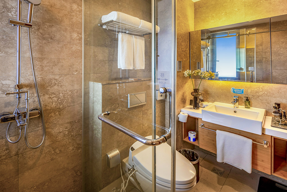 所在楼层8-16楼,一室二厅一卫的格局,房间面积70-80m²,包含1张1.8m*2m的床,房间可欣赏城市景观,所有房间都有阳台。该房型24小时热水,配有拖鞋,浴室镜,浴衣,独立淋浴间,吹风机,以及免费洗漱用品,房间中央空调,书桌,房间内保险箱,沙发,220伏插座,衣柜,闹钟,遮光窗帘,床具为鸭绒被,房间内高速上网,房间内配备电热水壶,咖啡包以及茶包,免费瓶装水,居家冰箱。房间内电话可拨打国内长途,液晶电视机。厨房配有软水系统,煤气灶,脱排油烟机。