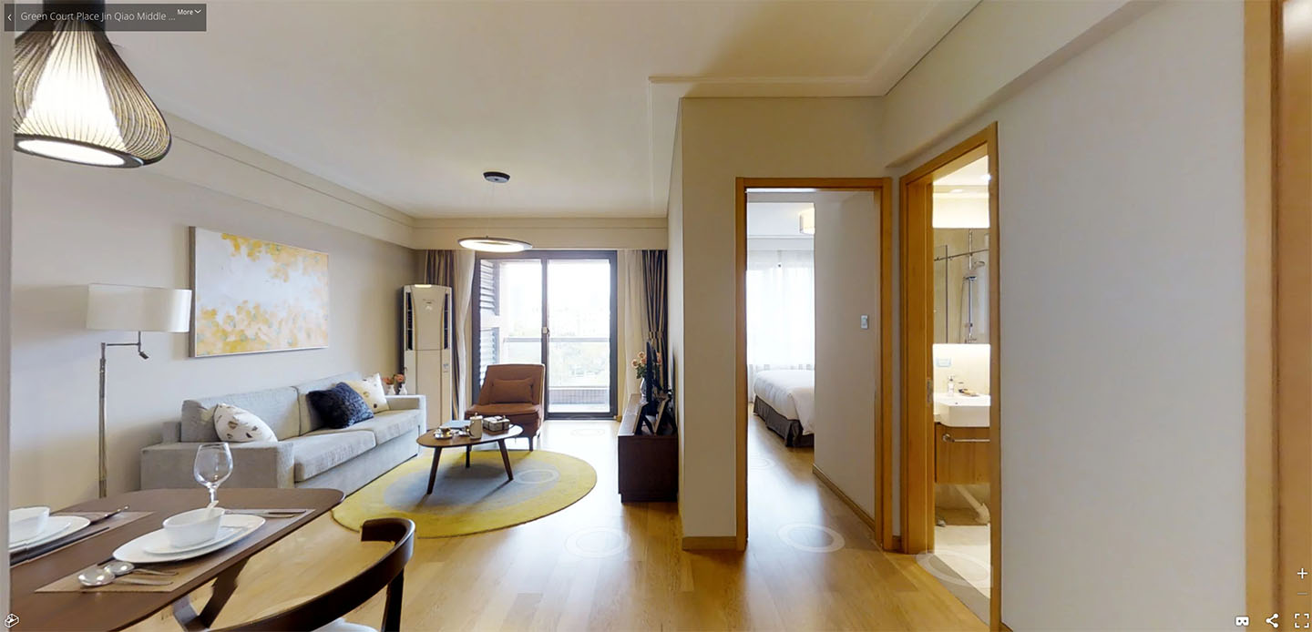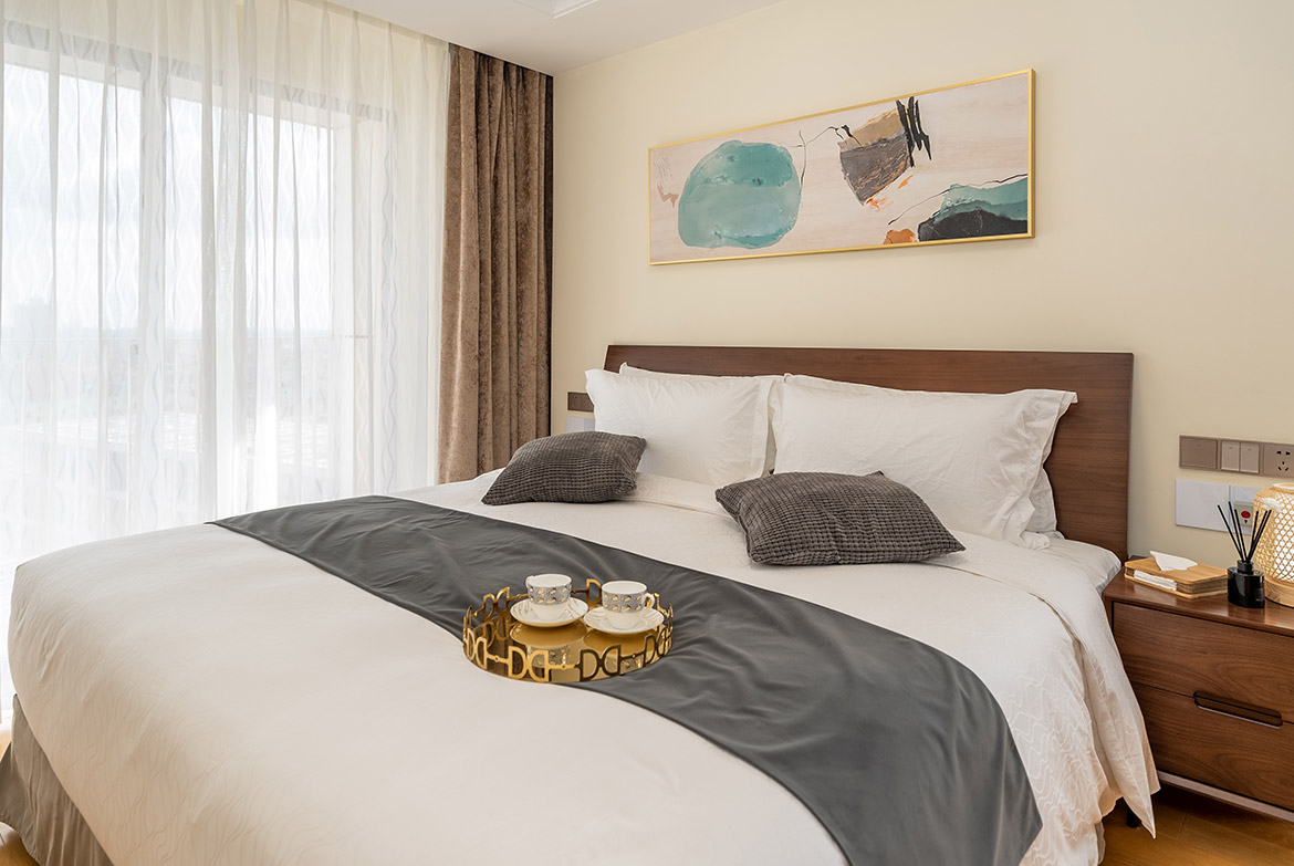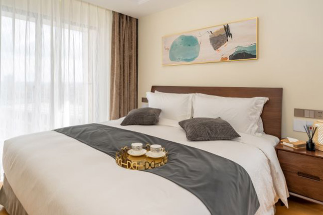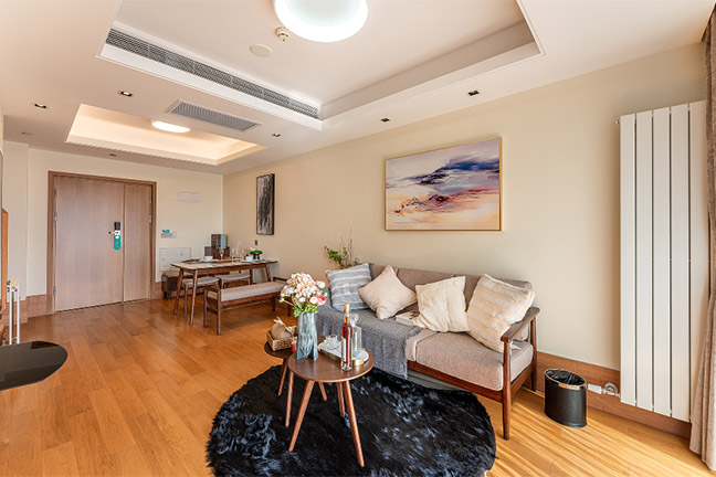 碧云庭服务公寓精致的室内装修,齐全的设施设备以及多样化的房型选择为您和您的家庭提供温馨、舒适、安全、高尚的现代化居住环境。公寓房型分别有两房和三房可供选择,两房最多入住4人,三房最多入住6人;其中两房有豪华两房以及行政两房,豪华两房一部分为一间卧室一间书房,一部分为两间双南卧室。行政两房则是南北两卧室;三房有由两间卧室及一间书房的标准三房以及三间都是卧室的豪华、行政三房组成。