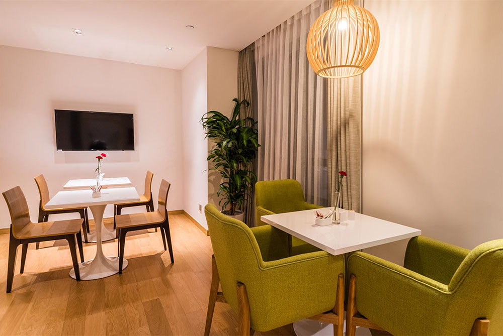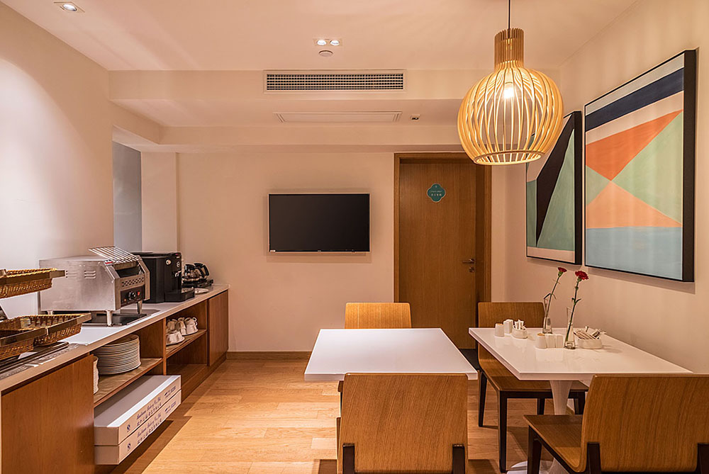 我们拥有完善的内部配套设施,房间配有宠物亲子房,300平米的健身房(内含有氧区、无氧区和瑜伽房)、兼容咖啡厅和阅读空间的多功能早餐厅、室内和室外儿童乐园、商务中心、公共会客区等;我们诚挚的邀请您来到碧云庭服务公寓,在温暖的午后,享受一杯浓情的咖啡。