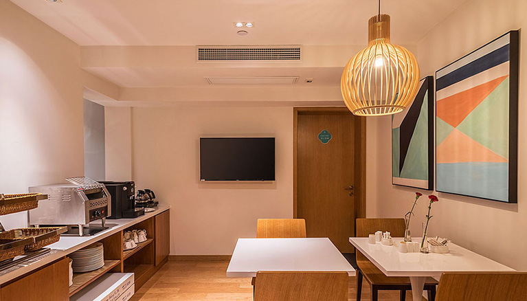 We have perfect internal facilities, the rooms are equipped with pet-friendly rooms, 300 square meters of gym (including aerobic area, anaerobic area and yoga room), multi-functional breakfast room compatible with coffee shop and reading space, indoor and outdoor children's playground, business centre, public meeting area, etc.. We invite you to come to Green Court Place Serviced Apartments and enjoy a cup of espresso on a warm afternoon.