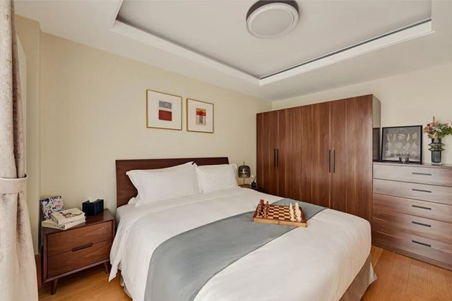 碧云庭服务公寓精致的室内装修,齐全的设施设备以及多样化的房型选择为您和您的家庭提供温馨、舒适、安全、高尚的现代化居住环境。公寓房型分别有两房和三房可供选择,两房最多入住4人,三房最多入住6人;其中两房有豪华两房以及行政两房,豪华两房一部分为一间卧室一间书房,一部分为两间双南卧室。行政两房则是南北两卧室;三房有由两间卧室及一间书房的标准三房以及三间都是卧室的豪华、行政三房组成。